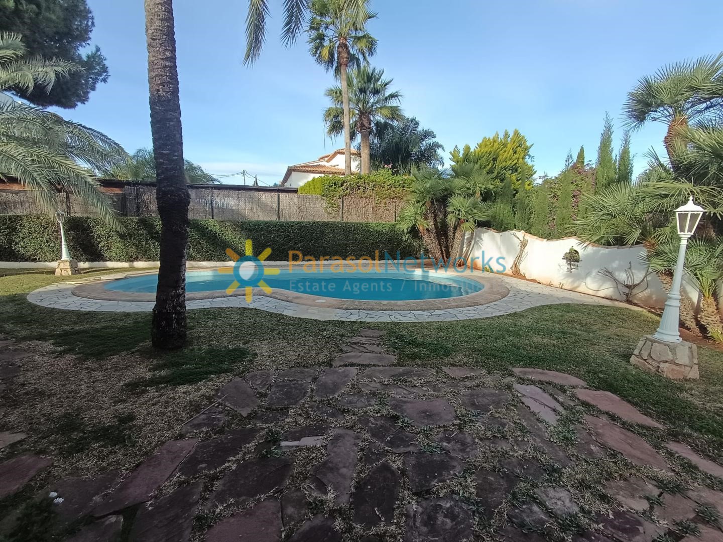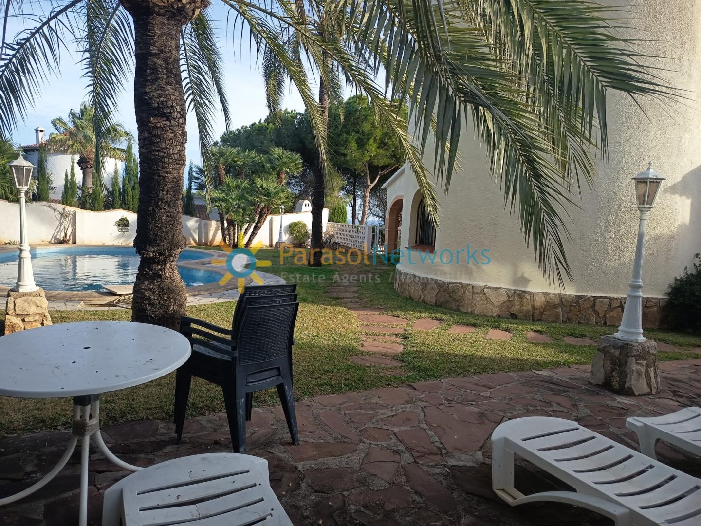 A l´exterior, la vila ofereix una gran terrassa, un jardí cuidat i una piscina privada, perfectes per relaxar-se, prendre el sol o compartir moments en família i amb amics.