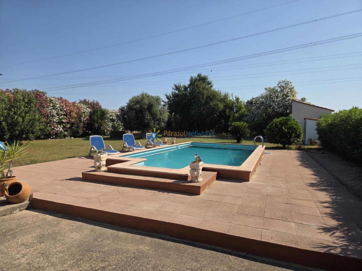 En el exterior, la propiedad destaca por su piscina rodeada de una amplia acera, perfecta para tomar el sol o relajarse. Además, cuenta jardineras, un amplio porche para vehículos, un jardín y una barbacoa.