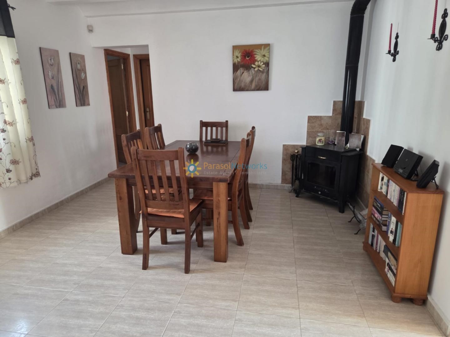 En el interior, vemos un recibidor que nos conduce a un luminoso salón, seguido de un comedor con estufa de leña, una espaciosa cocina. Además, hay un pasillo que conecta con tres habitaciones dobles y dos baños completos, uno equipado con bañera y el otro con ducha.