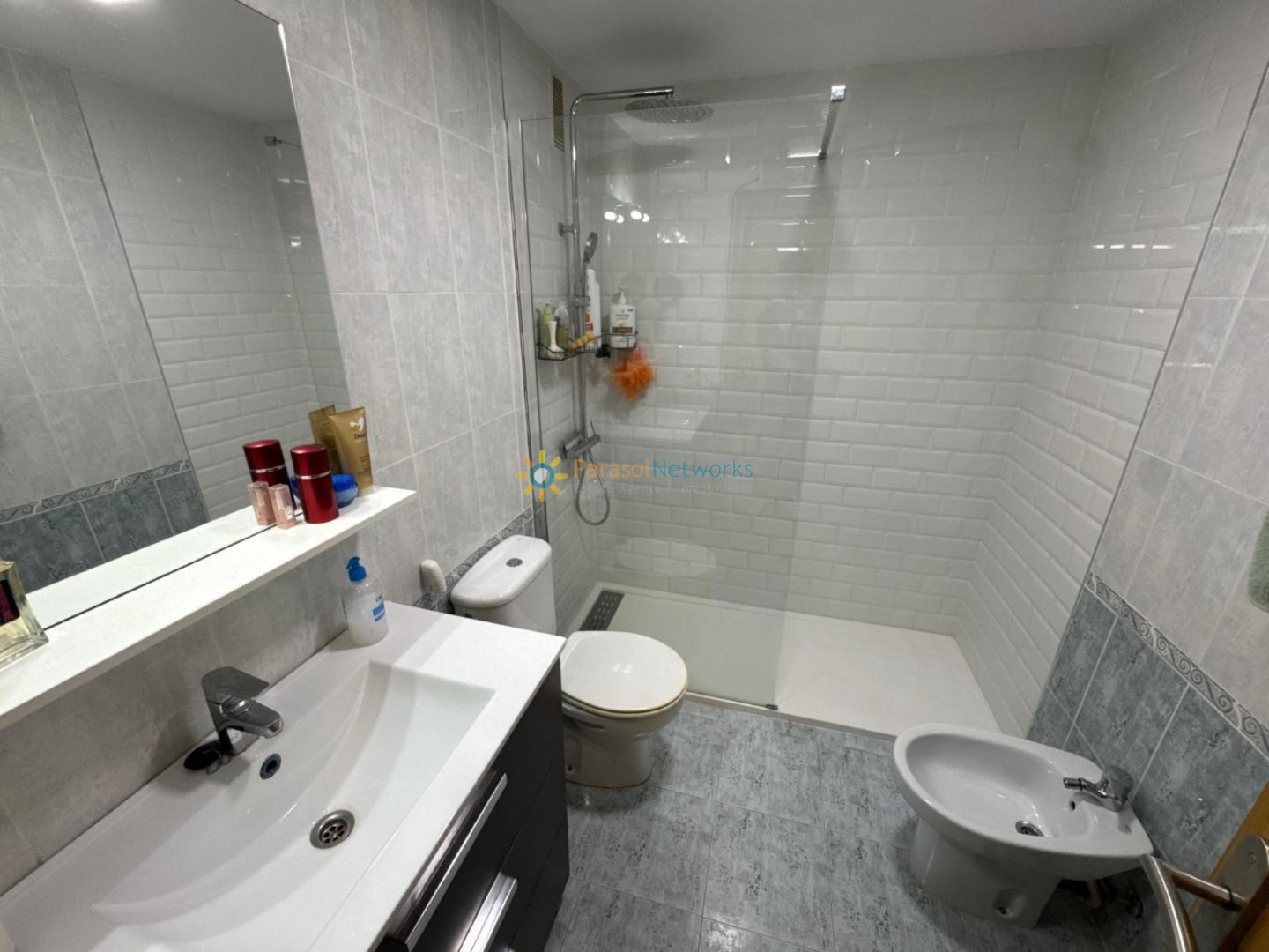 Im Erdgeschoss gibt es eine Garage für ein Auto, ein helles Wohnzimmer mit Klimaanlage, eine voll ausgestattete offene Küche, zwei Schlafzimmer und ein komplettes Badezimmer mit Dusche.