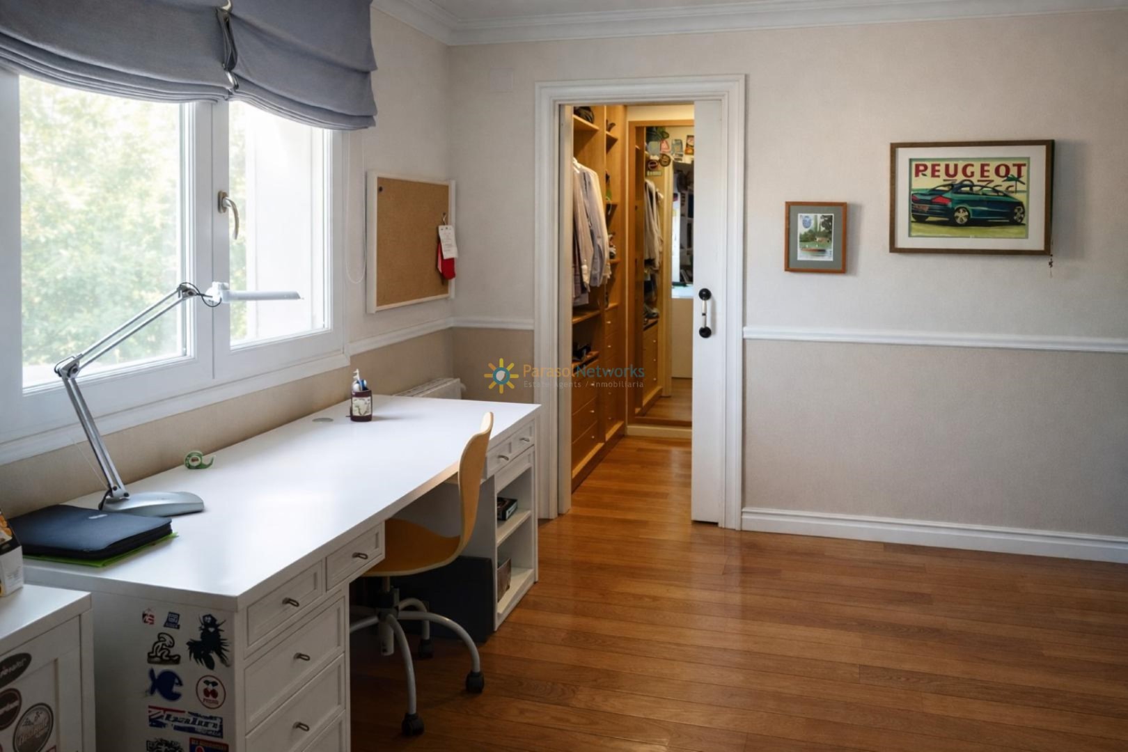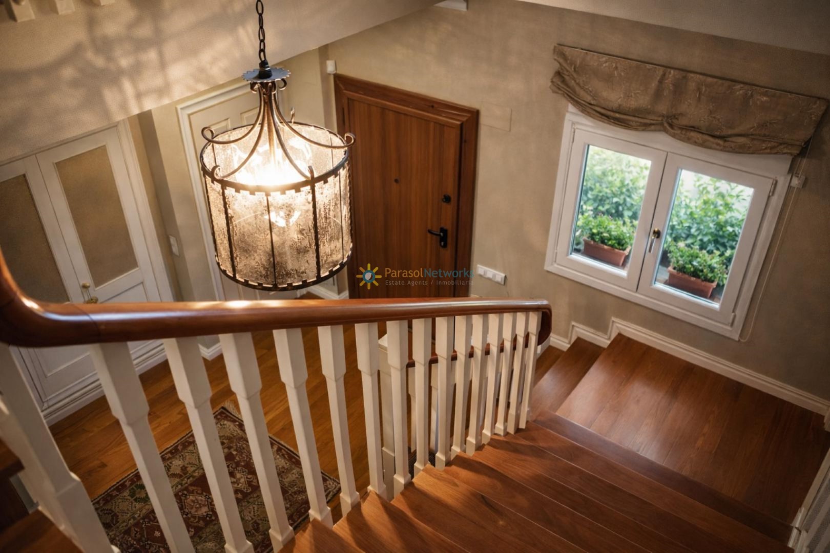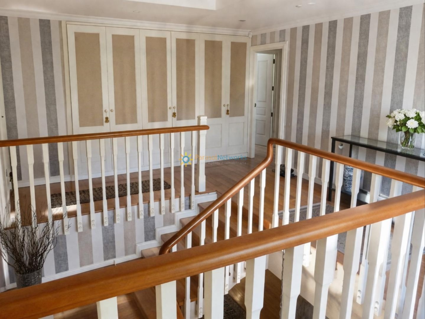 The first floor has four bedrooms, all with dressing rooms (one of them en suite and with a fireplace), two full bathrooms, a spacious terrace with stunning mountain views and a hallway that connects to the laundry room on the ground floor.