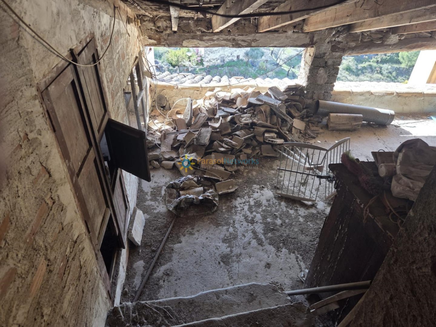 La segunda planta es diáfana y luminosa, aunque necesita restauración. Sin embargo, este espacio ofrece un potencial para convertirse en un área habitable acogedora.