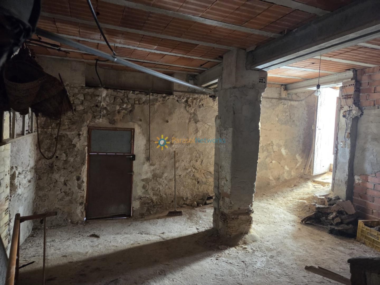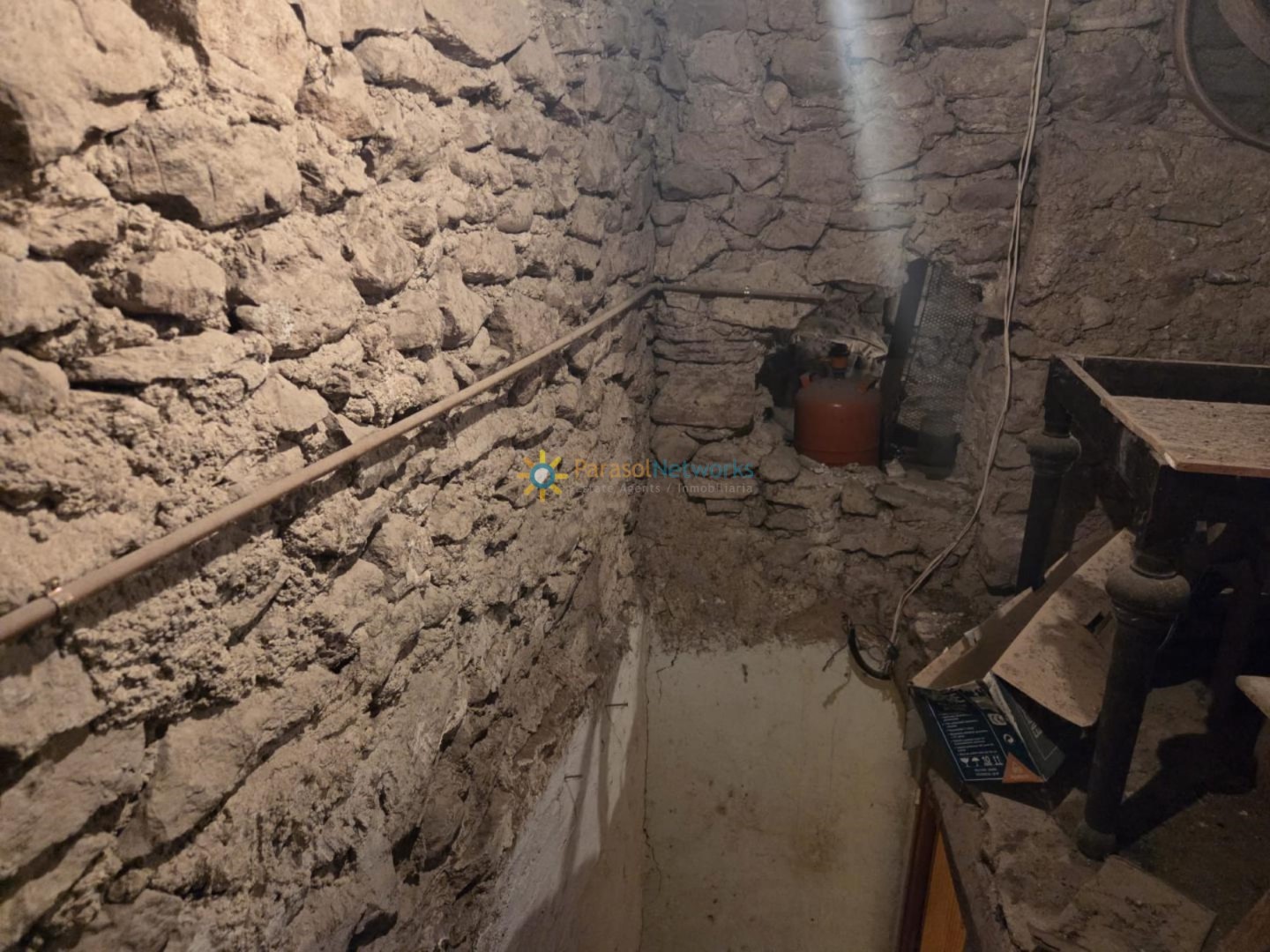 Finalmente, la planta del sótano, tiene una estancia diáfana con las paredes de piedra y salida a un patio. Con una renovación adecuada, este espacio puede trasformares en un área versátil que se adapte a nuevas necesidades.