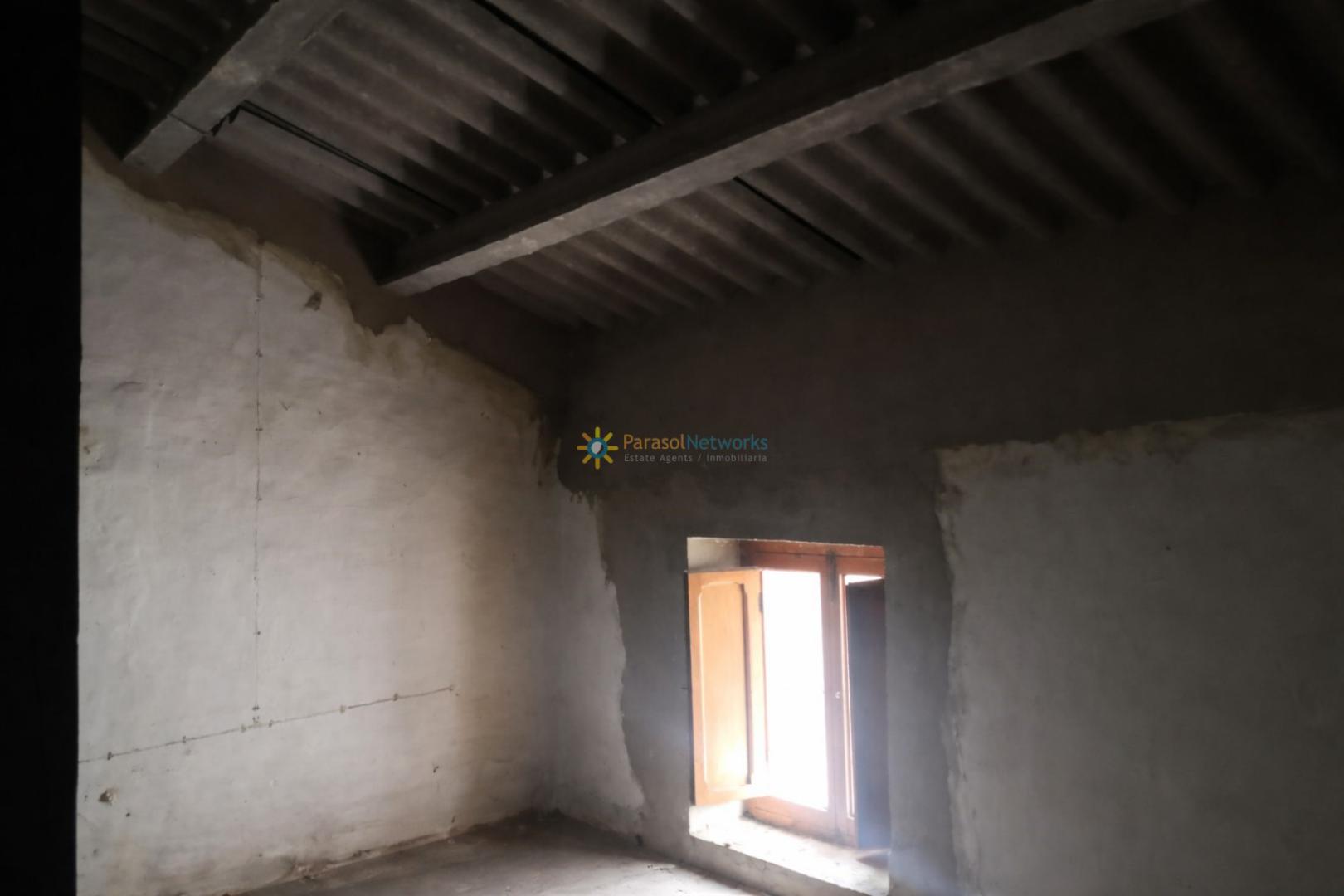Antigua casa con garaje y acceso a dos calles en Beniganim, con una parcela de 104m2 y una superficie construida de 203m2 distribuidos en tres niveles.